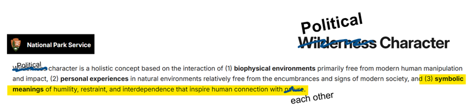 Wilderness character inspires human connection with nature. Political character inspires human connection with each other. We have an obligation to take care of both.