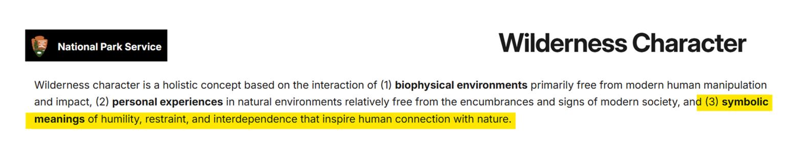An element of this character to which I want to return later is the “symbolic meanings of humility, restraint, and interdependence that inspire human connection to nature.”