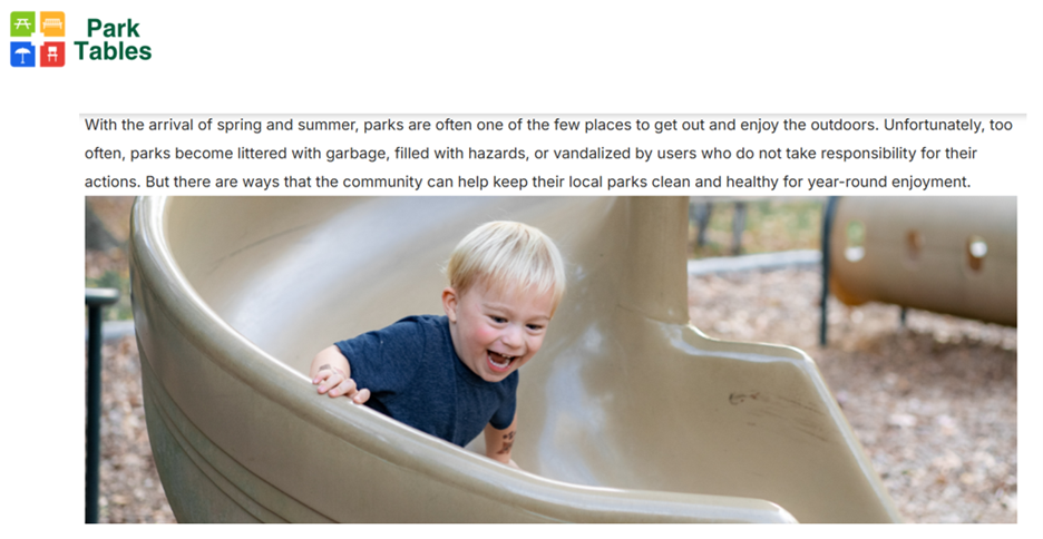 Here are a few suggestions from a company called Park Tables, which as far as I can tell sells tables for parks, which would make sense. The parallels aren't perfect, but hopefully help answer the question of how to think about politics the way we think about our public spaces.