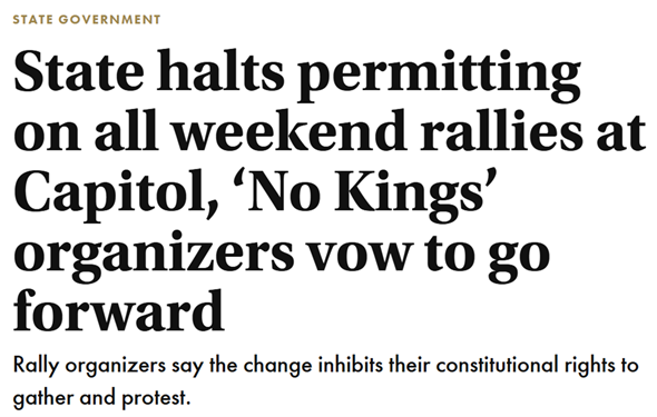 A lot of people, including me, spend a lot of time talking about civil discourse, structural changes to our politics that would give people incentives to be less awful, and the need to stop making every disagreement apocalyptic and every opponent evil incarnate. Those are all good things. You can’t govern in ALL CAPS. Please be more civil and less shouty, among other things that makes it more effective when you do have to raise your voice. Dr. King's Letter from a Birmingham Jail is powerful in part because he expresses reluctance at having to resort to civil disobedience.